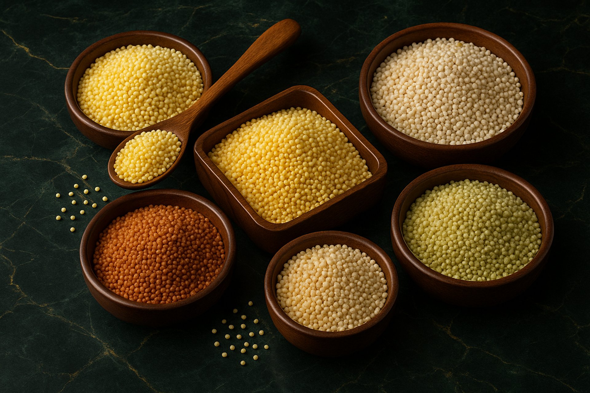 At Vyoma Global Exports Private Limited, we supply premium Indian millets—naturally gluten-free, rich in fiber, minerals, and protein. We offer whole grains, flours, flakes, semolina (rava), and ready mixes with export-grade packing and private-label options for global buyers.